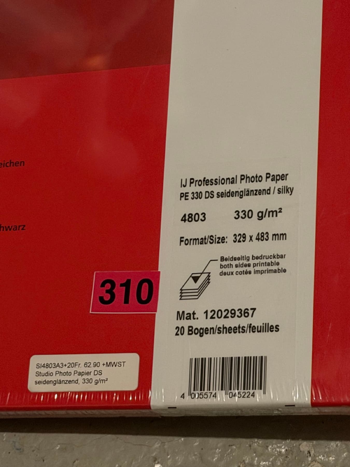 IJ Professional Photo Paper PE 330 DS silky A3+